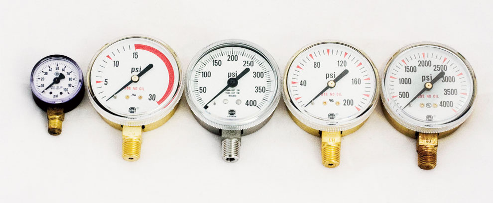 The selection of brass, stainless steel, and monel® gauges presented here represent those used on pressure regulators offered in this catalog. They can be used as repair parts or for installation in other systems.